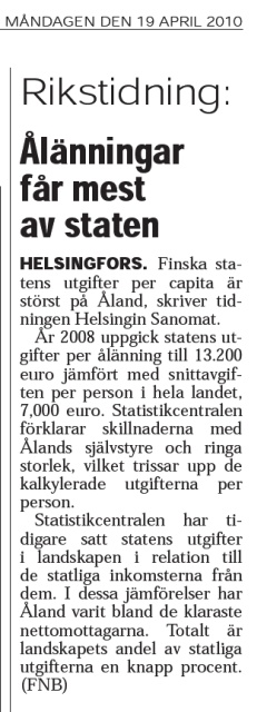 Det visar åtminstone att det finns behov för diskussion med Helsingfors om att Ålänningarna skall få rätt att beskatta sig själva eller borde vi ha högre skatt än egentliga Finland för att vi inte skall behöva vara snyltare.