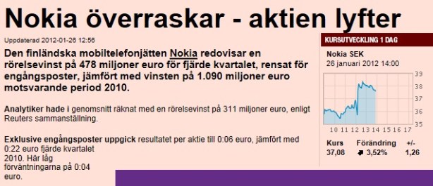 Tycker det är lite lustigt hur två stora tidningshus ser så olika på samma sak. Såhär skriver HBL om Nokia>>