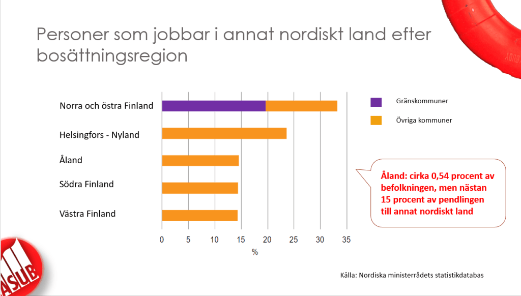 Enligt nordiska ministerrådets statistikdatabas så är Ålands andel av Finlands befolkning ca 0,54 procent men vi står för nästan 15(!) procent av alla i Finland som pendlar till ett annat nordiskt land. Således är gränsfrågan oerhört central för oss.