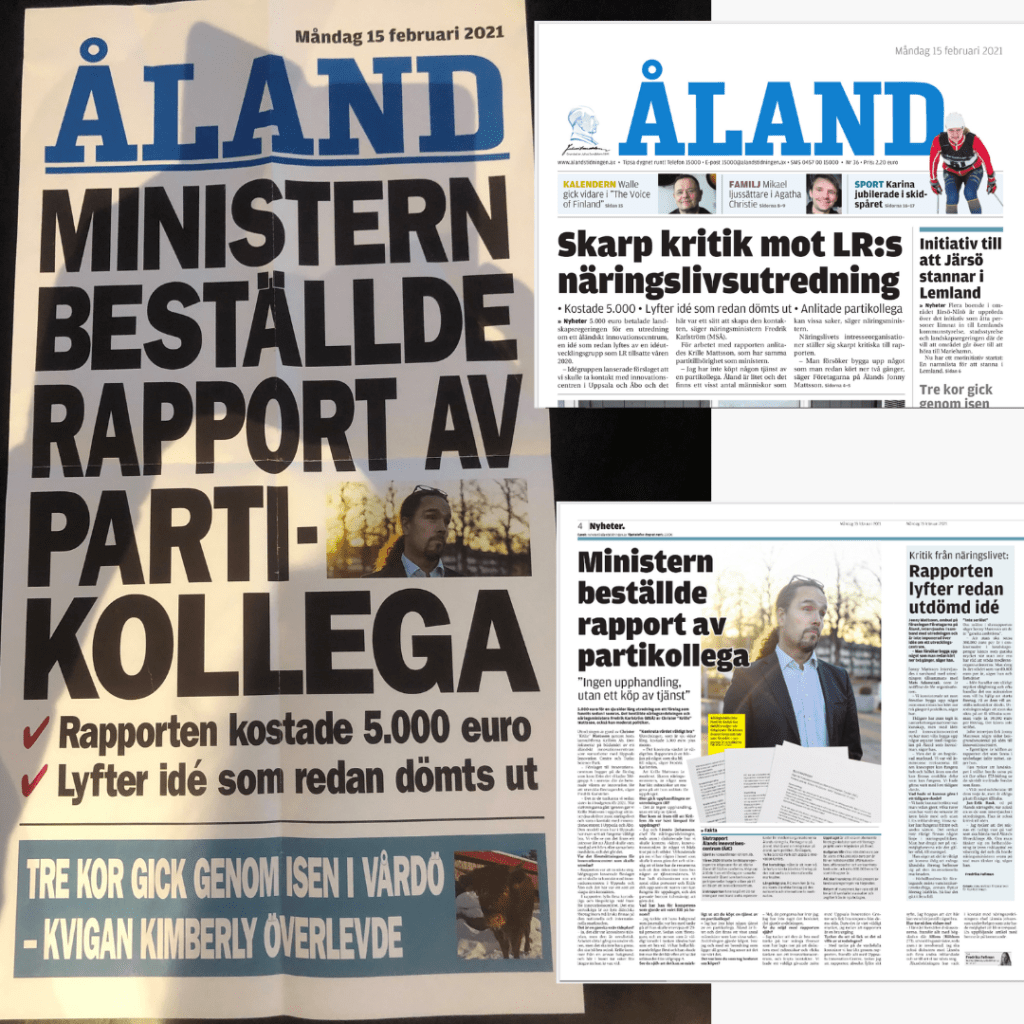 -”Det stod i Ålandstidningen, så det är sant”. Sa min farfar. För att ge ett exempel på att det inte alltid är så, så kommer ett exempel ifrån de senaste veckorna där både innehållet och ”vinklingen” inte är helt överensstämmande med sanningen och verkligheten. Det här reportaget, som blev en löpsedel, första sida och uppslag är ett ganska bra exempel. I det reportaget står det att jag både köpt och beställt en rapport av en partikollega.