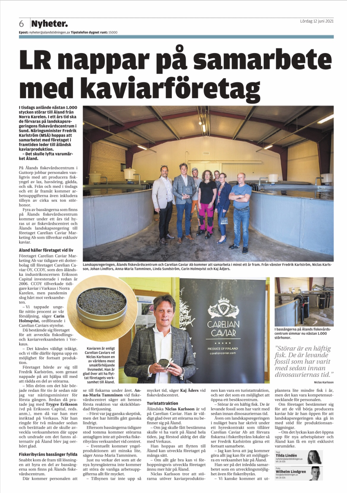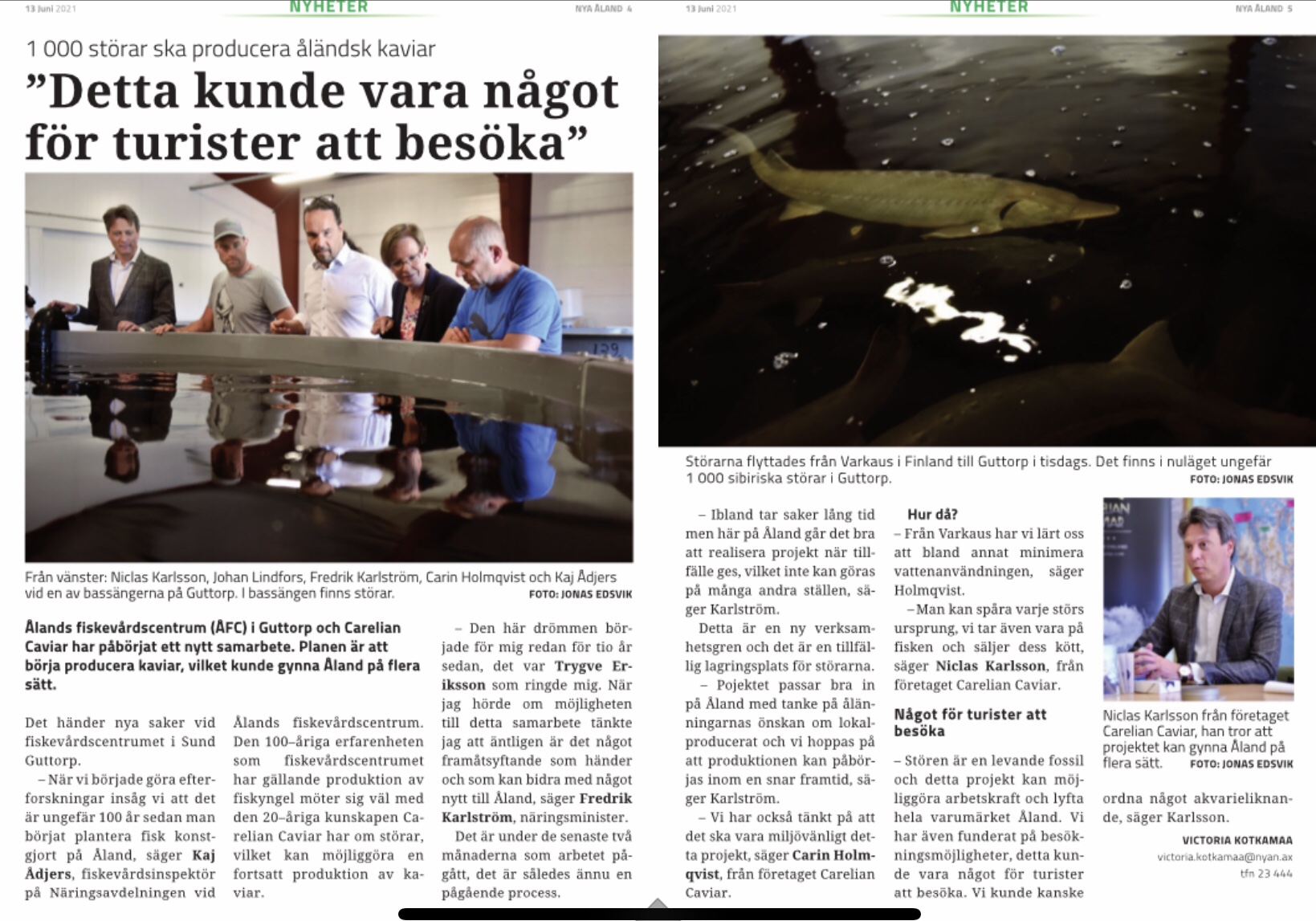 Bakgrunden är den att ägarna till Carelian Caviar har beslutat att avveckla fiskodlings- och kaviarverksamheten i dess nuvarande form som bedrivits i Varkaus sedan 2005. Genom ett nytt samarbete mellan Ålands landskapsregering och Ålands Fiskevårds Centrum (ÅFC) har ägarna beslutat att ta tillvara 939 eller ca sex ton störhonor för att möjliggöra en eventuell fortsatt produktion på Åland.