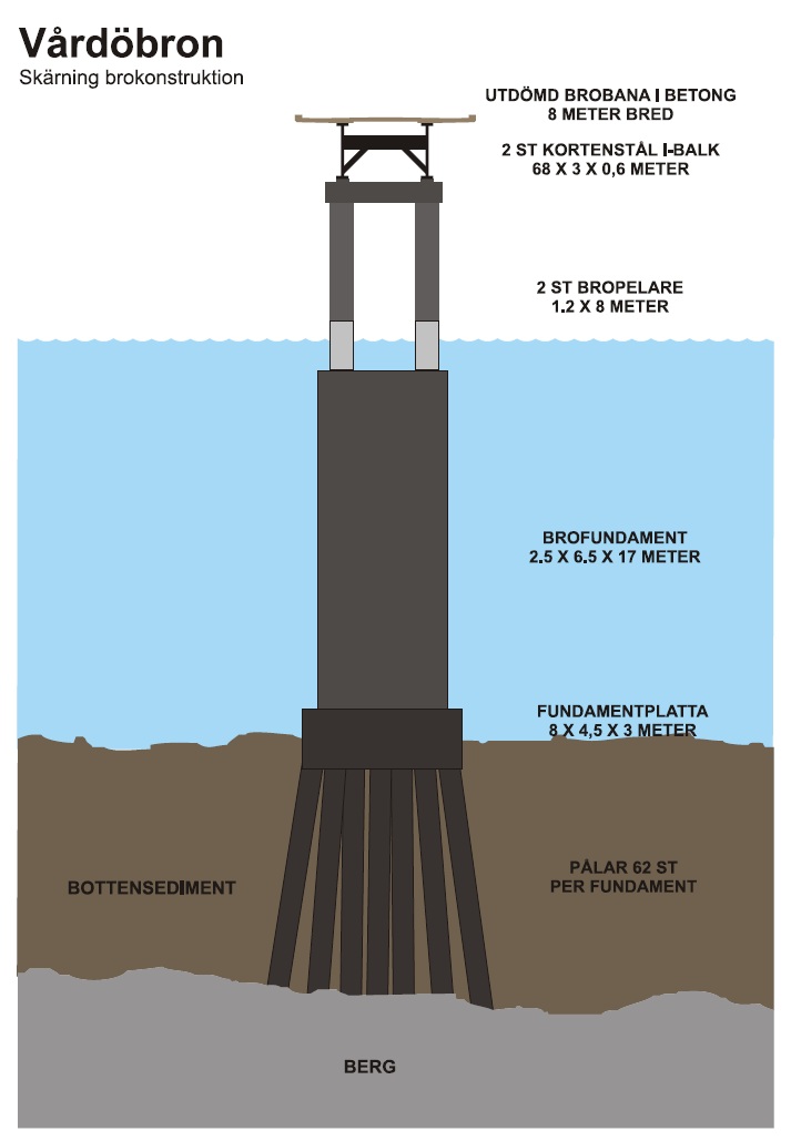 Varför skall man spendera 4-5 miljoner på en ny bro när en ”ny” bro på det gamla stället kan bli lika bra? Är det för att de kalkyler man räknat på säger att en ny håller i 120 år medan en renoverad i 60 år? Är det därför? Tänk om man ser på det så här då- du ger framtida Vårdöbor möjligheten att välja, kanske bron skall vara någon annanstans, inte vet vi hur man kan bygga broar om 60 år. Då kanske man för en billig penning kan bygga en bro direkt till Prästö? Vad vet vi? Det vet vi i alla fall att samhället ändras och det kommer till smarta lösningar och nya uppfinningar hela tiden. Det kommer helt säkert finnas nya sätt att bygga på .Vi vet inte vad vi har för trafikbehov, eller hur vi förflyttar oss?